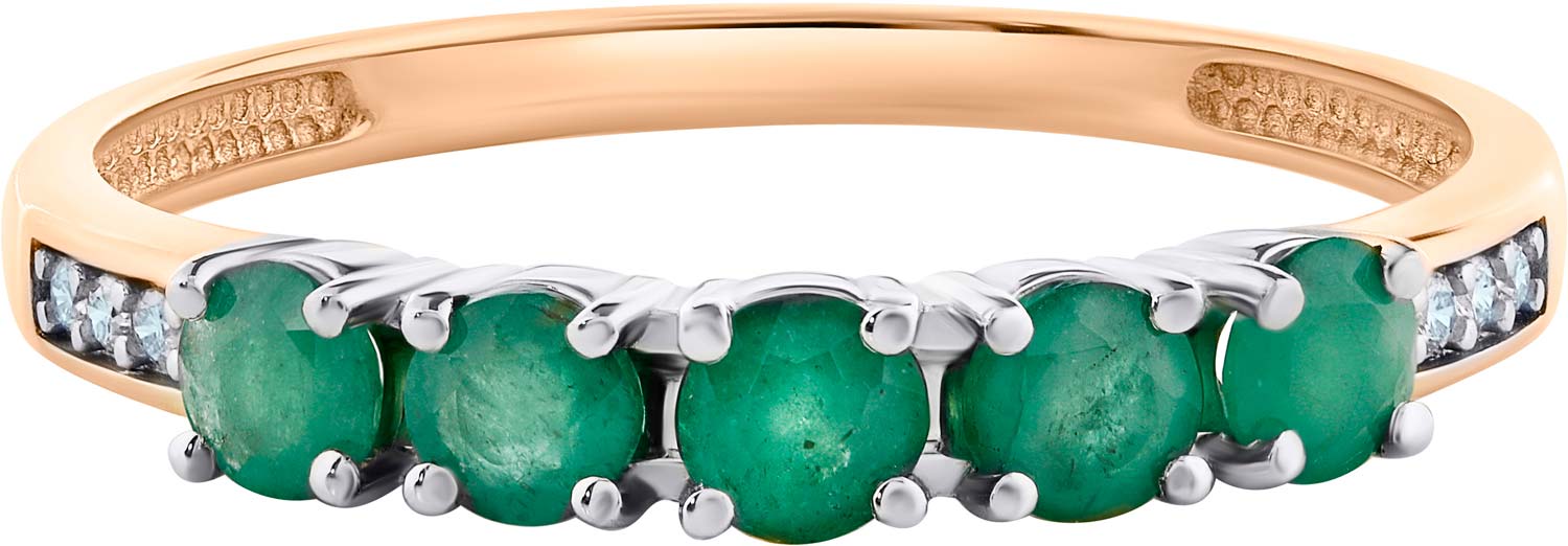 - красное золото, бриллиант, изумруд, вес: для размера 16,5 - 1,17г.