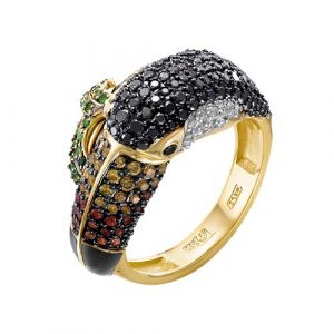 - желтое золото, эмаль, бриллиант, кварц, вес: для размера 17,5 - 6,14г.