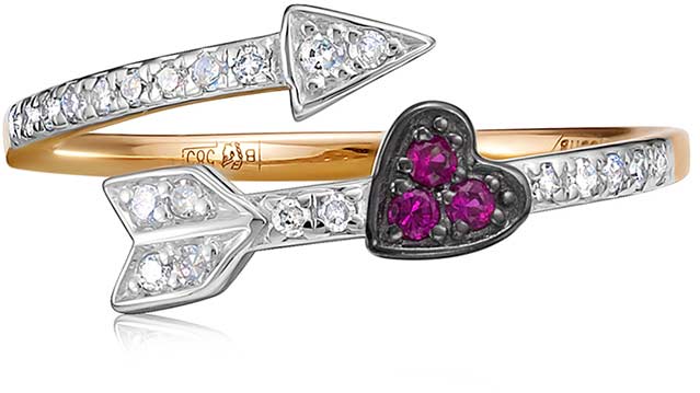 - красное золото, бриллиант, рубин, вес: для размера 16,5 - 1,11г.
