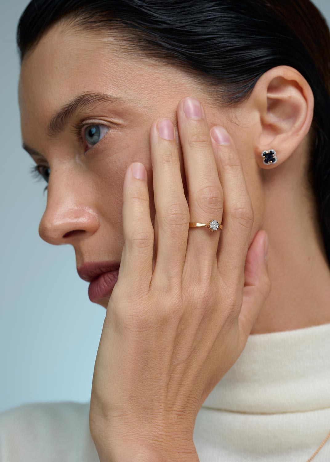 - красное золото, бриллиант, сапфир, вес: 1,53г.