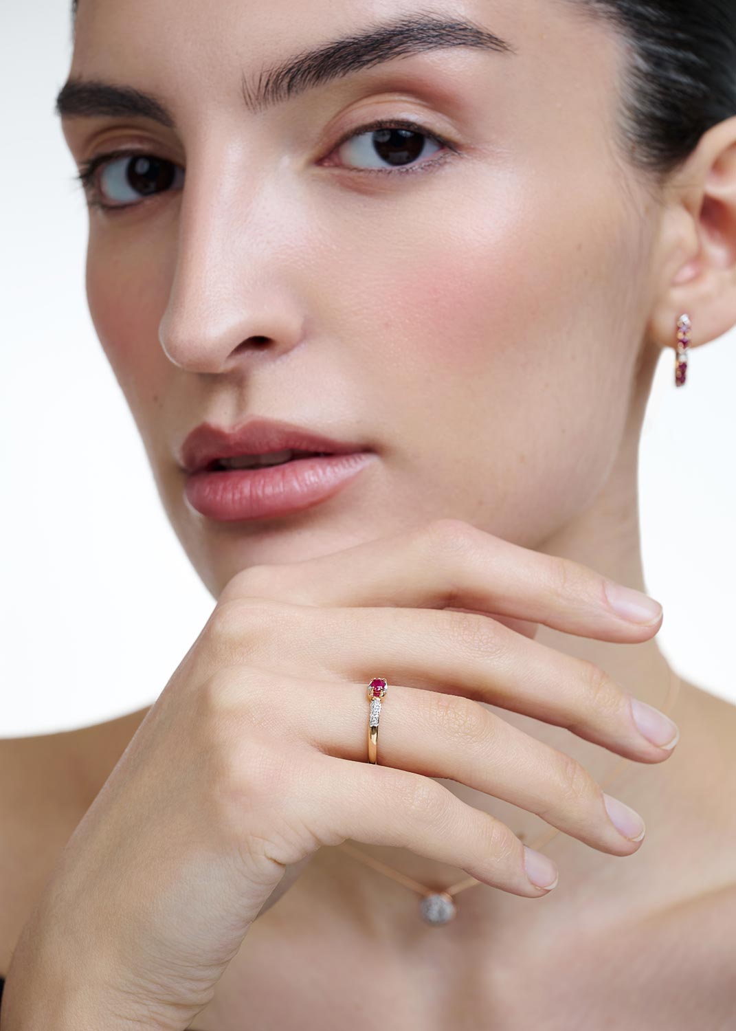 - красное золото, рубин, бриллиант, вес: 1,2г.
