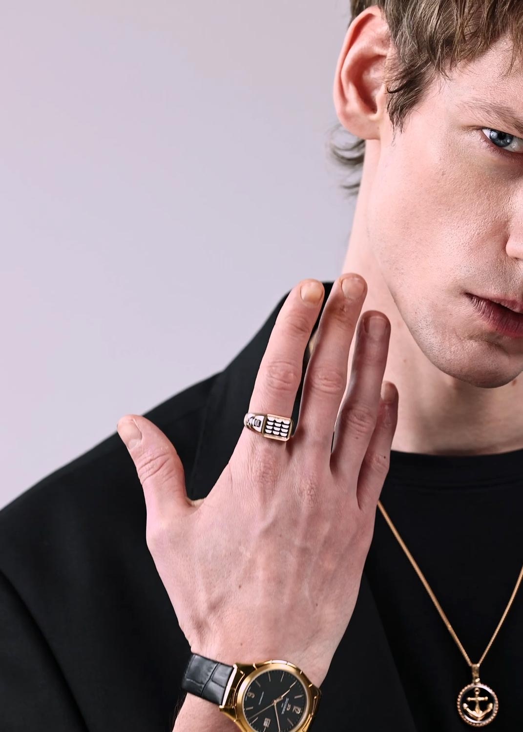 - красное золото, оникс, вес: для размера 20,5 - 5,53г.