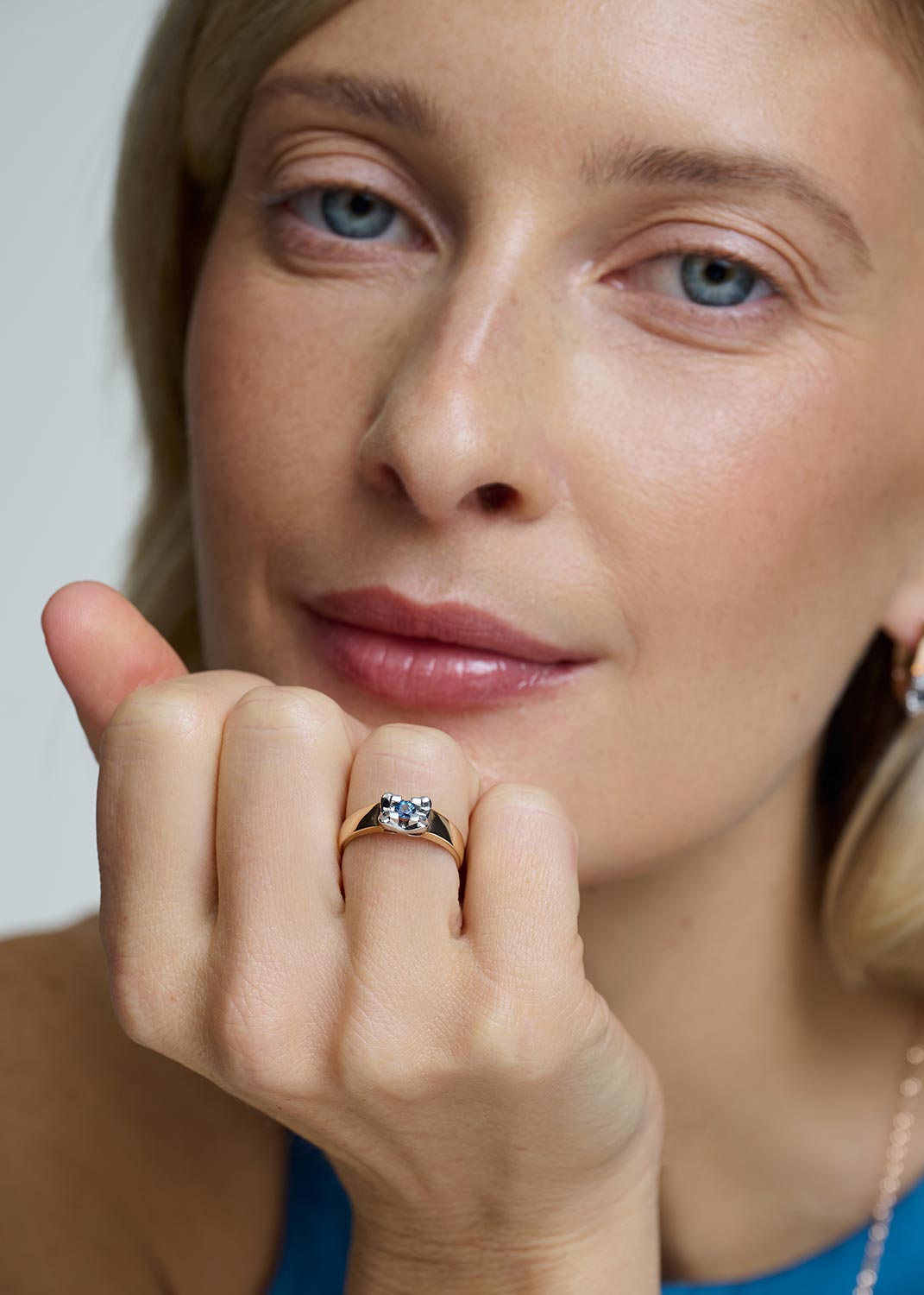 - красное золото, бриллиант, сапфир, вес: 1,6г.