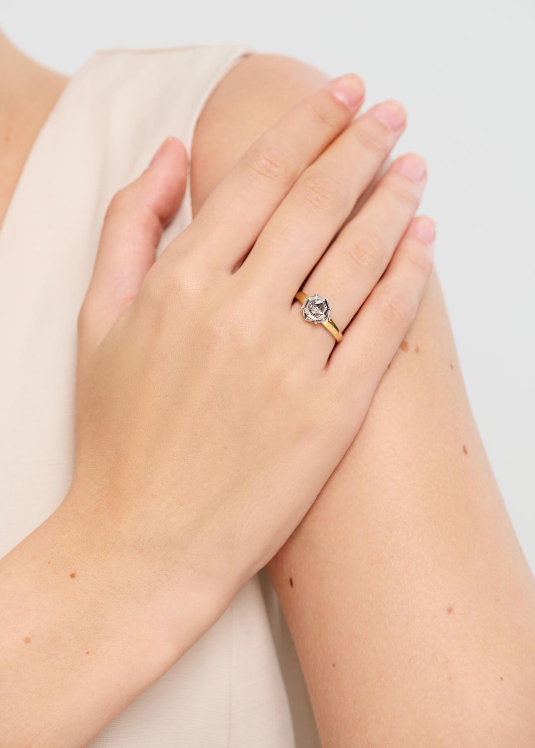 - желтое золото, бриллиант, вес: для размера 17,5 - 2,04г.