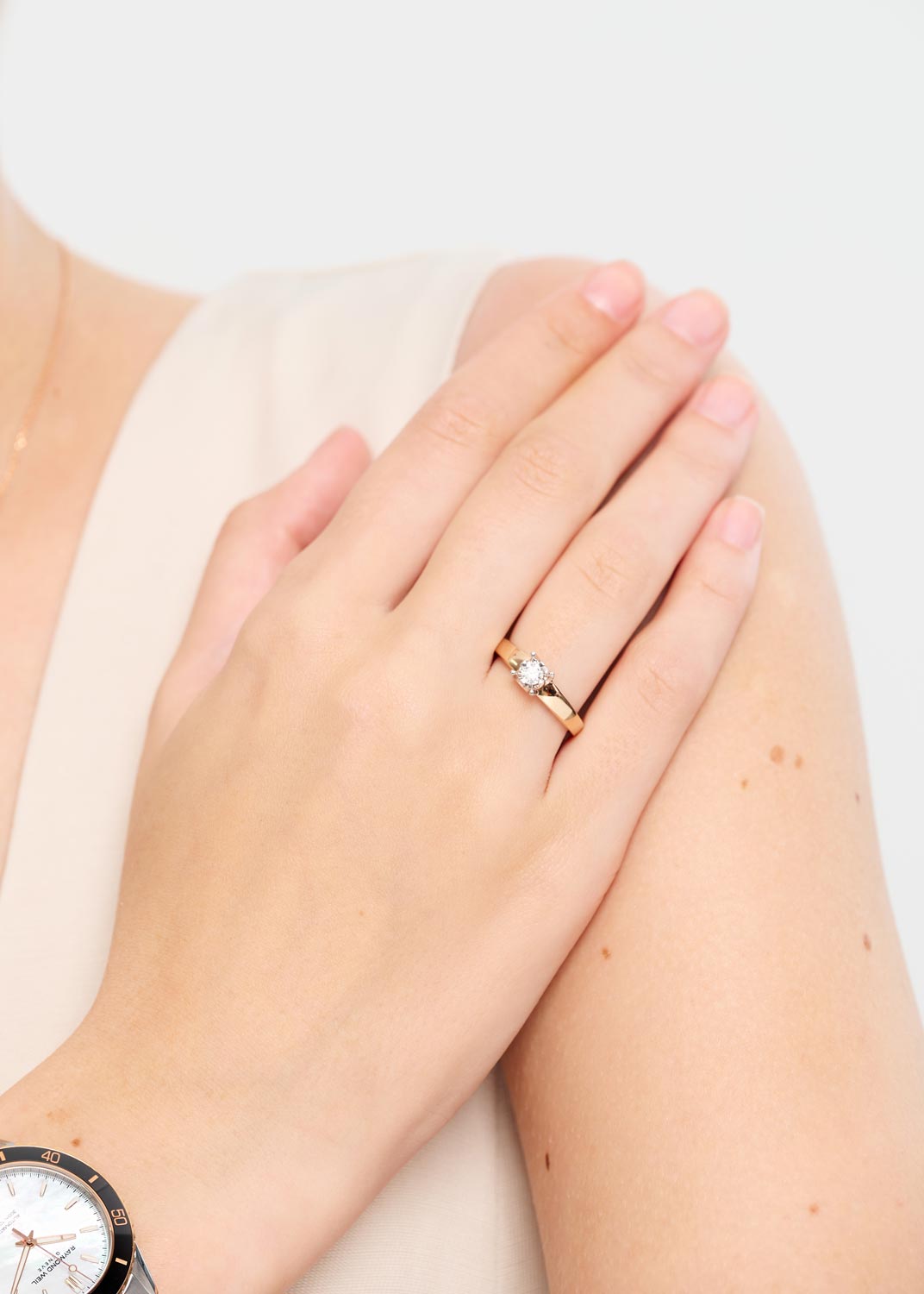 - розовое золото, бриллиант, вес: для размера 17 - 3,03г.