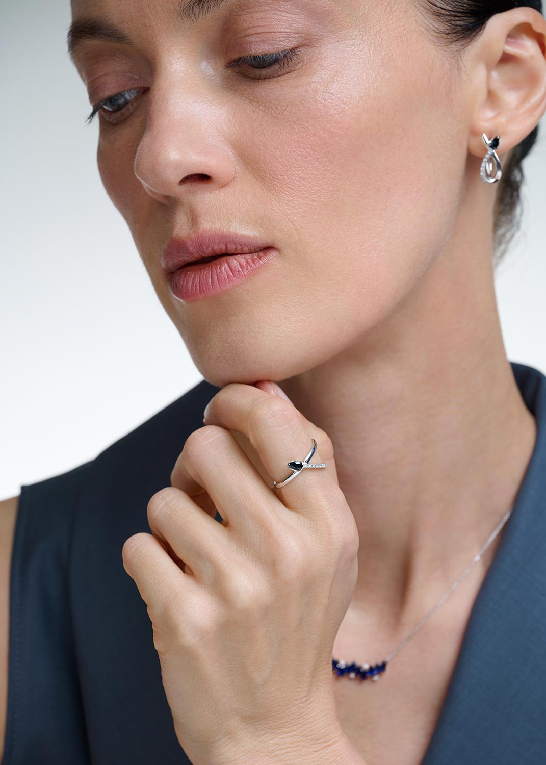 - белое золото, бриллиант, сапфир, вес: для размера 16,5 - 2,06г.