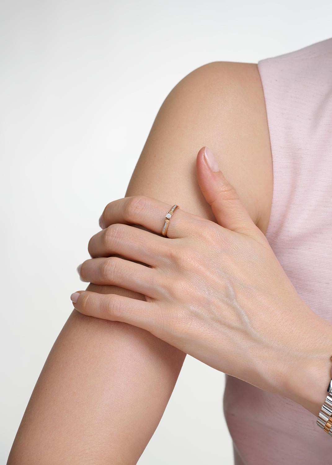 - красное золото, бриллиант, вес: для размера 17,5 - 0,87г.