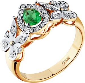 - красное золото, бриллиант, изумруд, вес: для размера 17,5 - 2,85г.