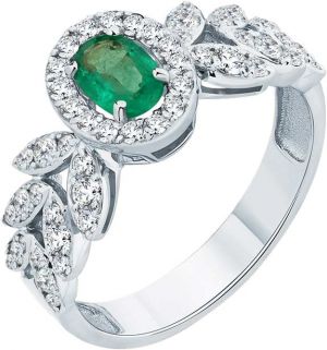 - белое золото, бриллиант, изумруд, вес: для размера 18 - 2,63г.