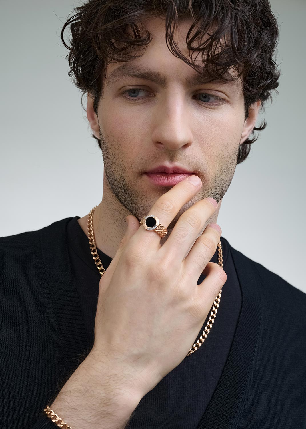 - желтое золото, оникс, бриллиант, вес: для размера 19 - 6,89г.