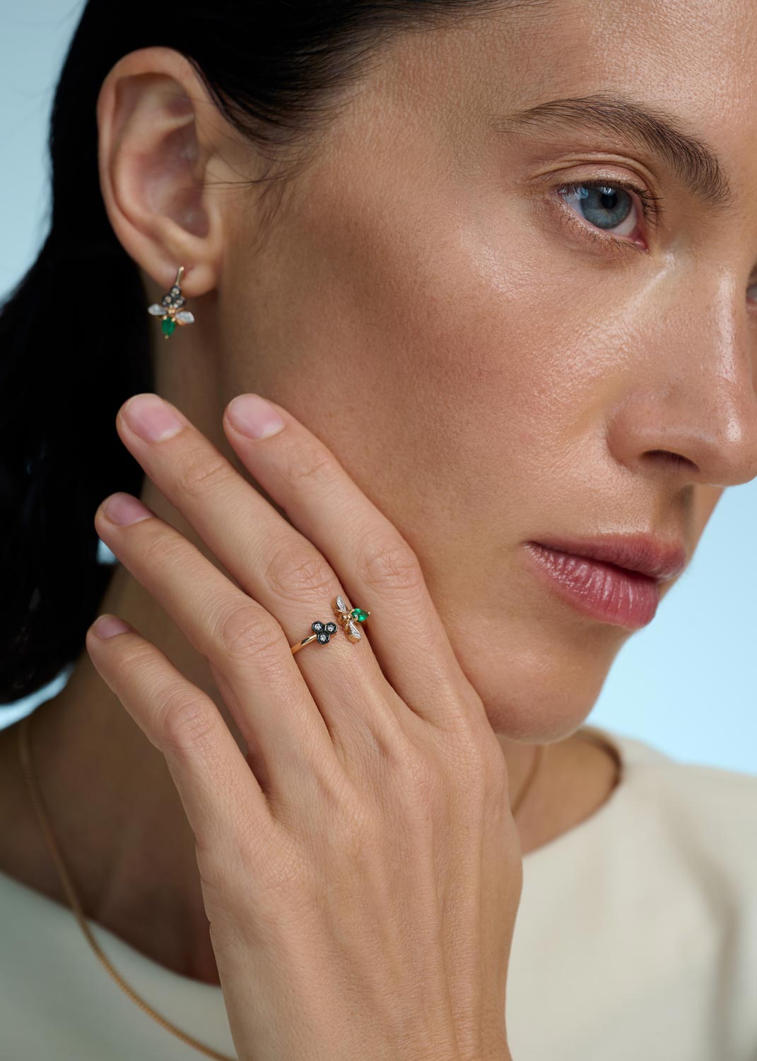 - желтое золото, бриллиант, изумруд, коньячный бриллиант