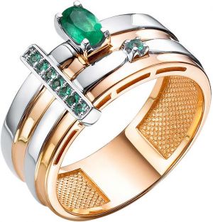 - красное золото, бриллиант, изумруд, вес: для размера 17 - 2,26г.