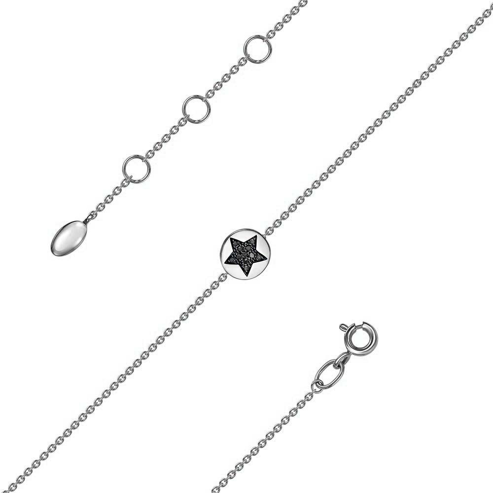 Браслет цепь из белого золота с подвеской RoseGrace 4-214-106B-CHBR с черными бриллиантами, бриллиантами