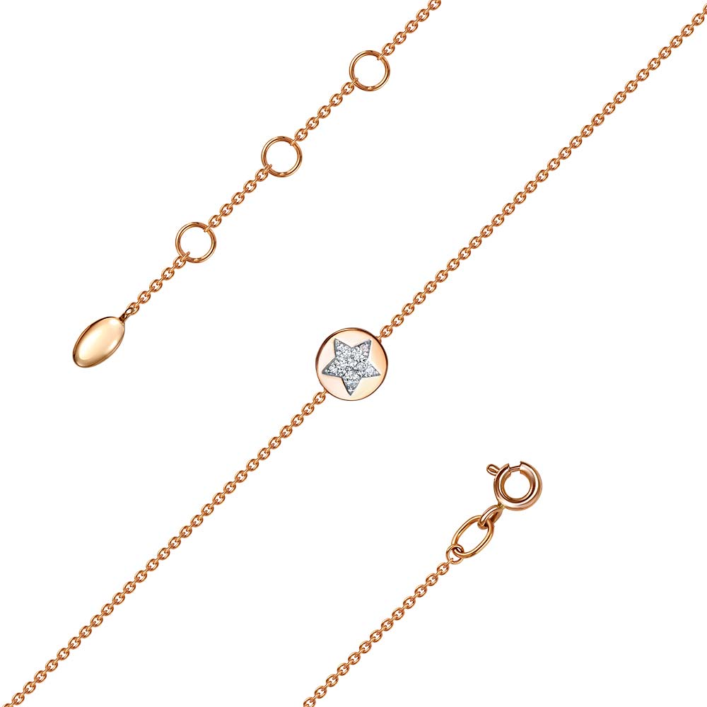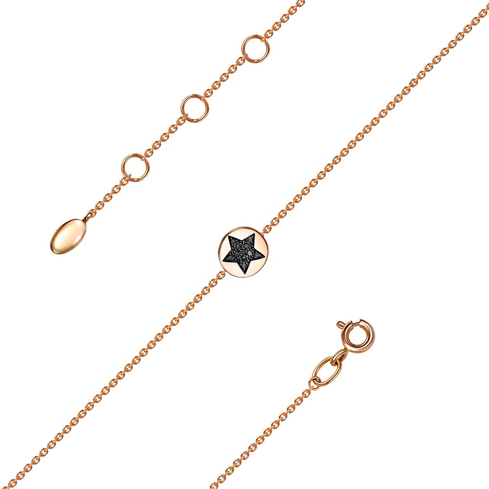 Фото «Золотой браслет цепь с подвеской RoseGrace 4-214-106K-CHBR с черными бриллиантами, бриллиантами»