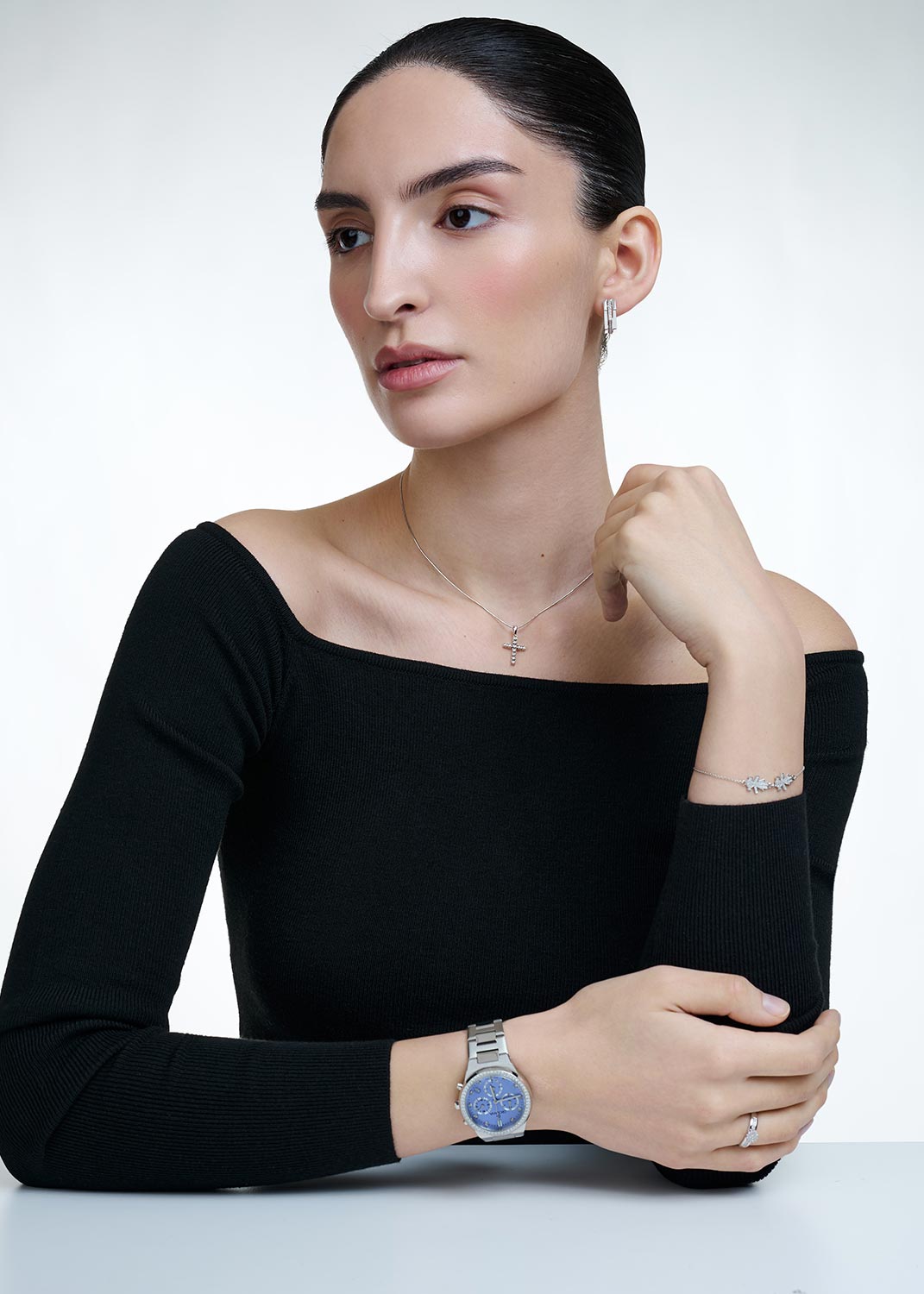 Фото «Женский декоративный крестик из белого золота RoseGrace 5-2657-103I1-3B с бриллиантами»