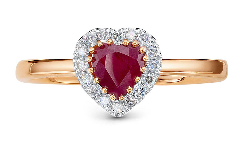 Фото «Золотое кольцо RoseGrace 5-6456-103-1K-RUB с рубином, бриллиантами»