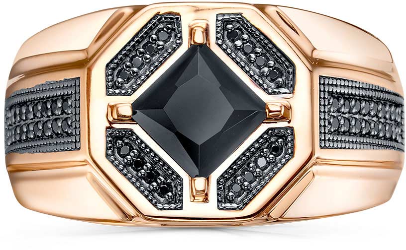 Мужская золотая печатка перстень RoseGrace 5-8719-403-1K-ONKCHM1 с ониксом, фианитами