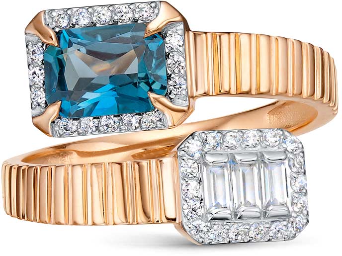 Золотое открытое кольцо RoseGrace 5-8793-403-1K-TLD с Лондон топазом, фианитами