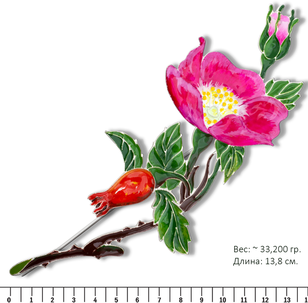 Серебряная брошь ''Шиповник'' Русские Самоцветы 41503 с эмалью