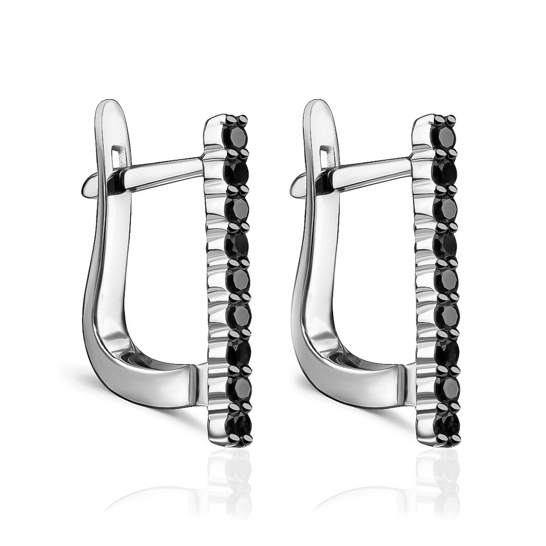 Золотые серьги Русские Самоцветы 53934 с черными бриллиантами