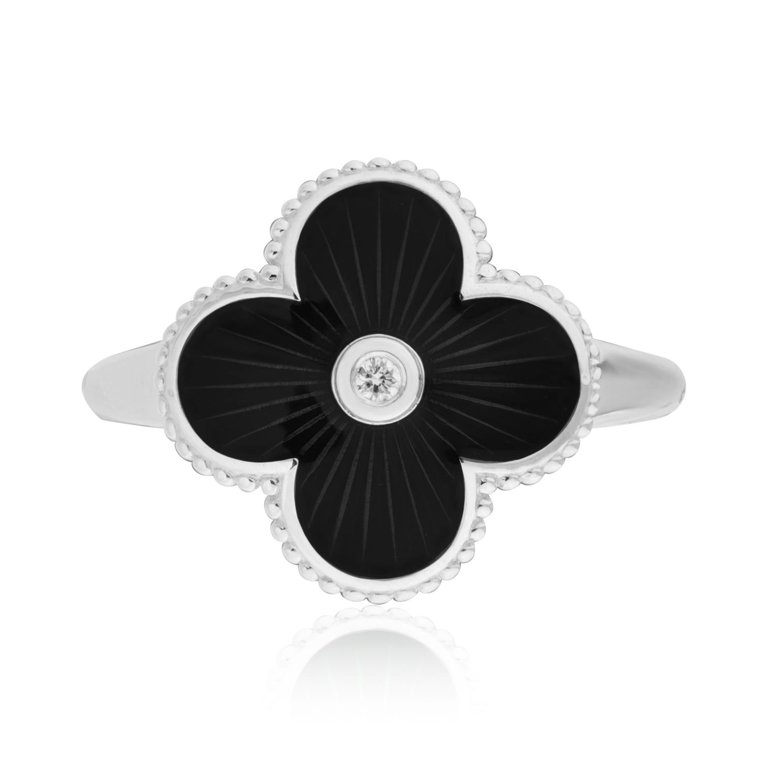 Серебряное кольцо Русские Самоцветы 73547-S-chernyj с эмалью, бриллиантом