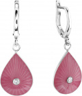 Фото «Серебряные серьги капельки с подвесками Русские Самоцветы 73585-S-rozovyj с эмалью, бриллиантами»
