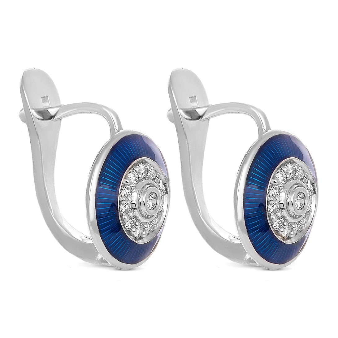 Фото «Серебряные серьги круглые Русские Самоцветы 76130-sinij с эмалью, бриллиантами»