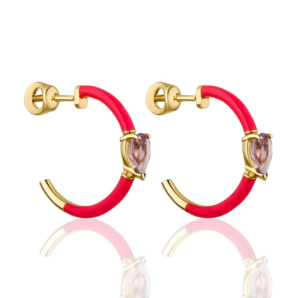 Фото «Золотые серьги полукольца Русские Самоцветы 88847-K с эмалью, аметистами»