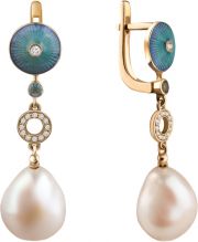 Фото «Золотые серьги с подвесками Русские Самоцветы 95636 с барочным жемчугом, топазами, бриллиантами, эмалью»