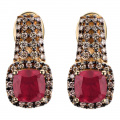 Золотые серьги SARGON JEWELRY E1216-2023 с рубинами, коньячными бриллиантами