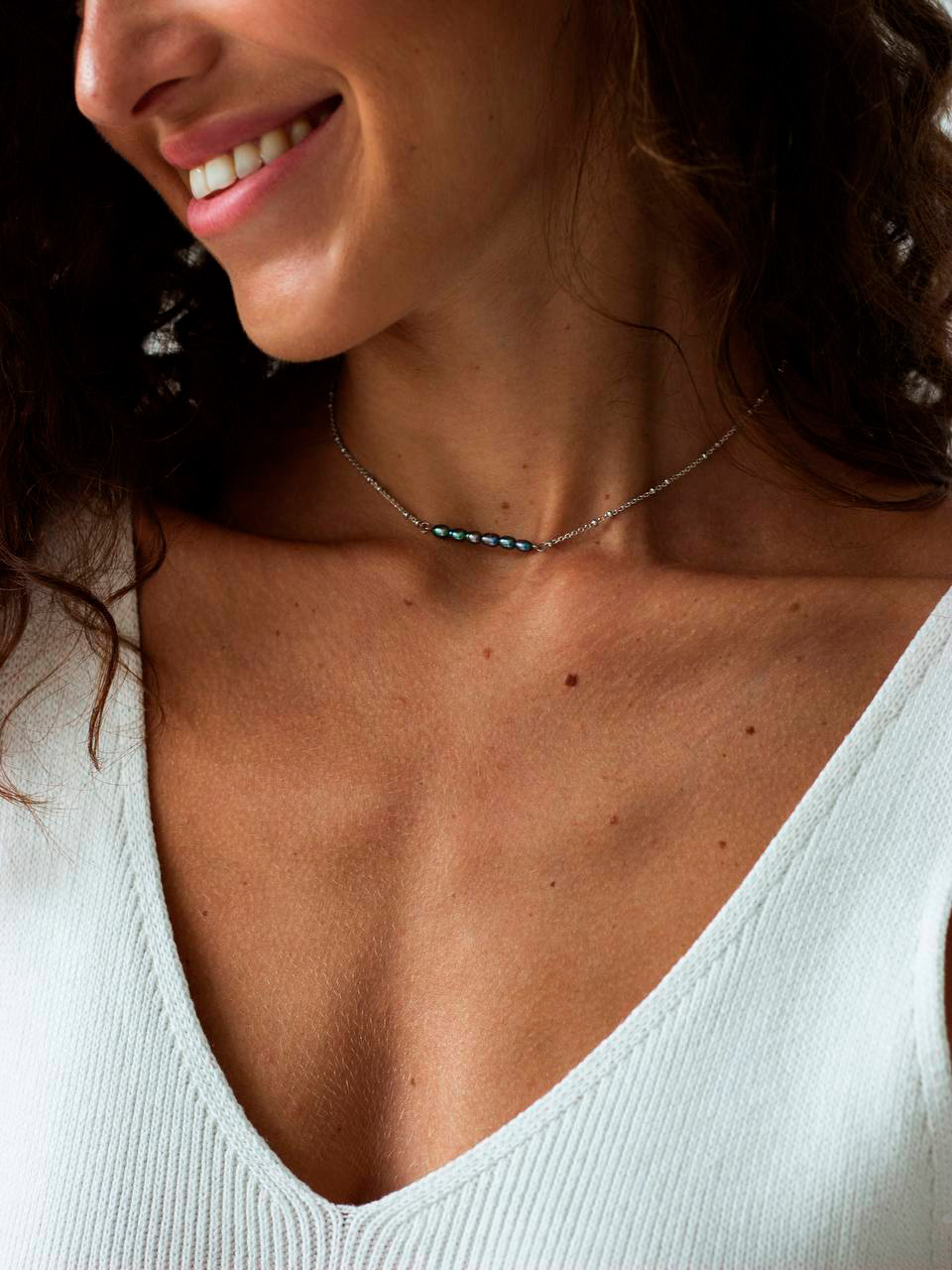 Фото «Серебряный чокер ''Северное сияние'' SBLESKOM 11311-sb с черным барочным жемчугом»