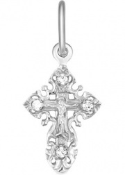 Фото «Женский серебряный православный крестик с распятием Серебро России 40-113R-26097 с фианитами»