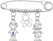 Серебряная брошь Серебро России 47-11-15R-59661 с фианитами, кристаллом Swarovski
