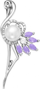 Серебряная брошь Серебро России BR-048-52894 c жемчугом, фианитом