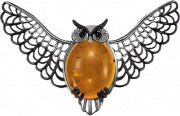 Фото «Серебряная брошь ''Сова'' Серебро России BR-078R640-71731 с янтарем, фианитами»