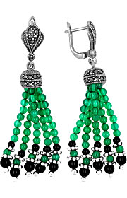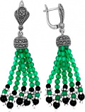 Фото «Серебряные серьги кисточки Серебро России HE-718-57083 с марказитами, агатами, ониксами»