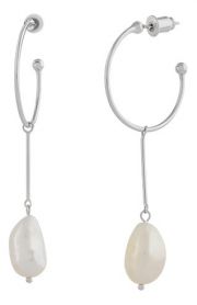 Серебряные серьги полукольца с подвесками Silver Sky SAE5241 с барочным жемчугом