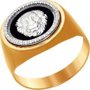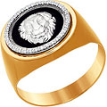 Мужская золотая печатка перстень SOKOLOV 015387 с эмалью с фианитами