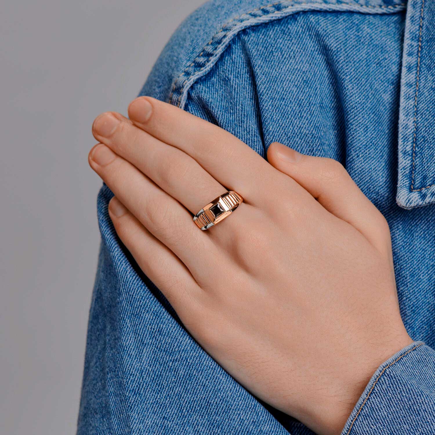 Фото «Мужская золотая печатка SOKOLOV 018420 с черным фианитом»