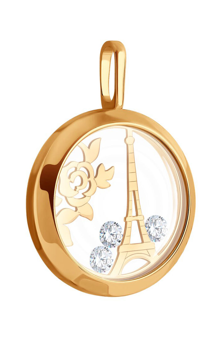 Золотой кулон ''Париж'' SOKOLOV 035322 с кубическим цирконием Swarovski, стеклом