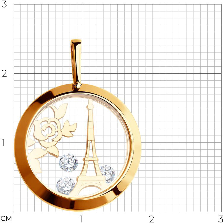 Фото «Золотой кулон ''Париж'' SOKOLOV 035322 с кубическим цирконием Swarovski, стеклом»