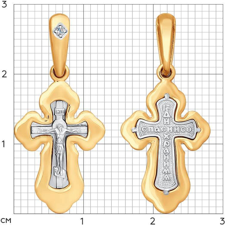 Фото «Женский золотой православный крестик с распятием SOKOLOV 1120069 с бриллиантом»