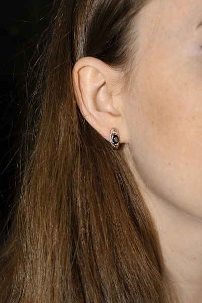 - сапфир - 1,104К - 2шт., бриллиант в 17 граней - 0,048К, чистота камня 2/3А (цвет, качество) - 12шт.
