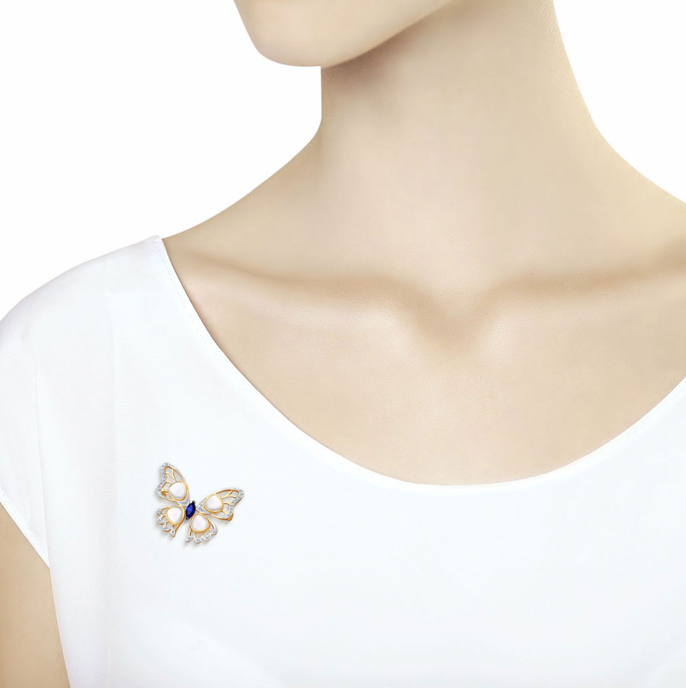 Фото «Золотая брошь ''Бабочка'' SOKOLOV 2040024 с сапфиром, перламутром, бриллиантами»