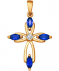Фото «Женский золотой декоративный крестик SOKOLOV 2120023 с бриллиантом, сапфирами»