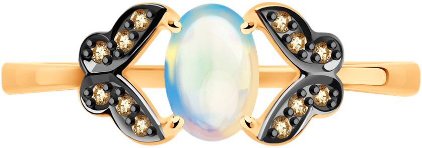 Золотое кольцо SOKOLOV 6014242 с опалом, коньячными бриллиантами
