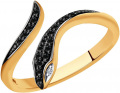 Золотое открытое кольцо ''Змея'' SOKOLOV 7010065 с бриллиантами, черными бриллиантами