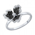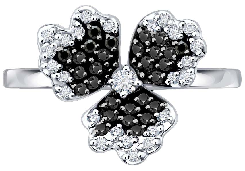 Кольцо из белого золота ''Цветок'' Sokolov 7010152-3_s с черными бриллиантами, бриллиантами