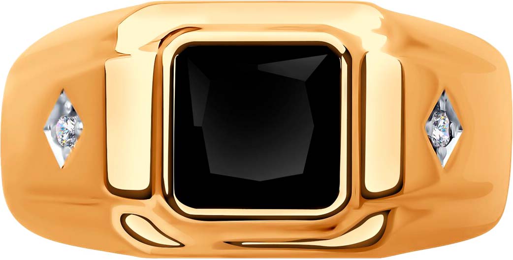 Мужская золотая печатка перстень SOKOLOV 71-00328 с черным агатом, бриллиантами