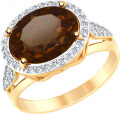 Золотой перстень SOKOLOV 715164 с раухтопазом, фианитами